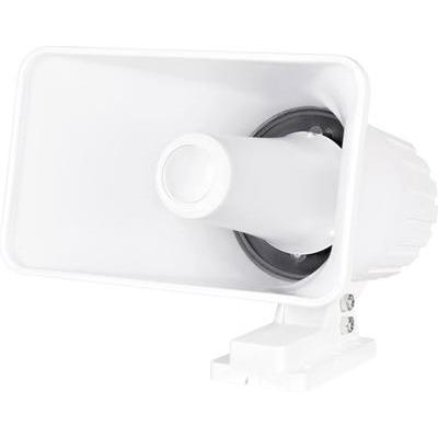 Nagy teljesítményű, messzeható hangszóró bemondás céljára, például sportrendezvények alkalmával. Szilárd ABS műanyag ház erős állvánnyal. Széles átviteli tartománya folytán ez a kürt hangszóró univerzálisan alkalmazható beszédhez és zenéhez.