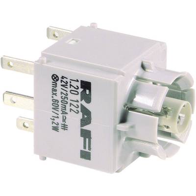 Csatlakozó: 2,8 mm-es laposérintkezős dugó · Funkciók (kapcsoló/nyomógomb): Nyomó · Gyártói szám: 1.20122.011 · Kapcsolási feszültség: 42 V · Kapcsoló/nyomógomb jellemzők: izzófoglalattal · Kivitel: izzó foglalattal · Max. kapcsolási áram: 0.25 A · Tartalom: 1 db · Típus: Érintkező elem · Élettartam (elektromos): 2 db 106 kapcsolási ciklus · Érintkező típus: 1 nyitó,1 záró · Érintkezőanyag: arany (Au)