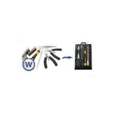 Csomag tartalma: 3,5 "Csípő fogó 4 "Hosszú fogó Csipesz Bitfej tartó 20db Vegyes Bitfej Racsnis csavarhúzó nyél Műanyag tartó doboz