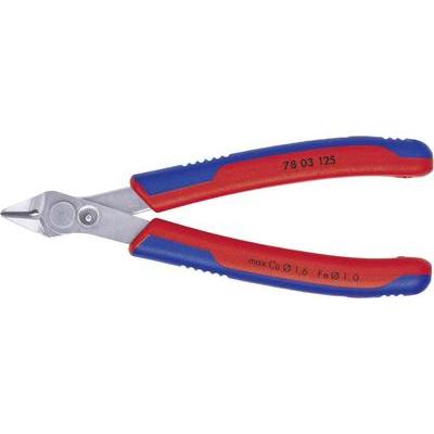 Alkalmazás (fogók): Elektronika- és finommechanika · Anyag: Szerszámacél · Anyagjellemző: Polírozott · Fogó jellemzők: Fazetta nélkül · Gyártói szám: 78 03 125 · Max. vágási érték, közepesen kemény drót: 1 mm · Méret, hossz: 125 mm · Szabvány: DIN ISO 9654 · Súly: 56 g · Típus: Elektronikai csípőfogó · Vágóerő: 54 HRC · Vágóérték (max.), puha drót: 1.6 mm
